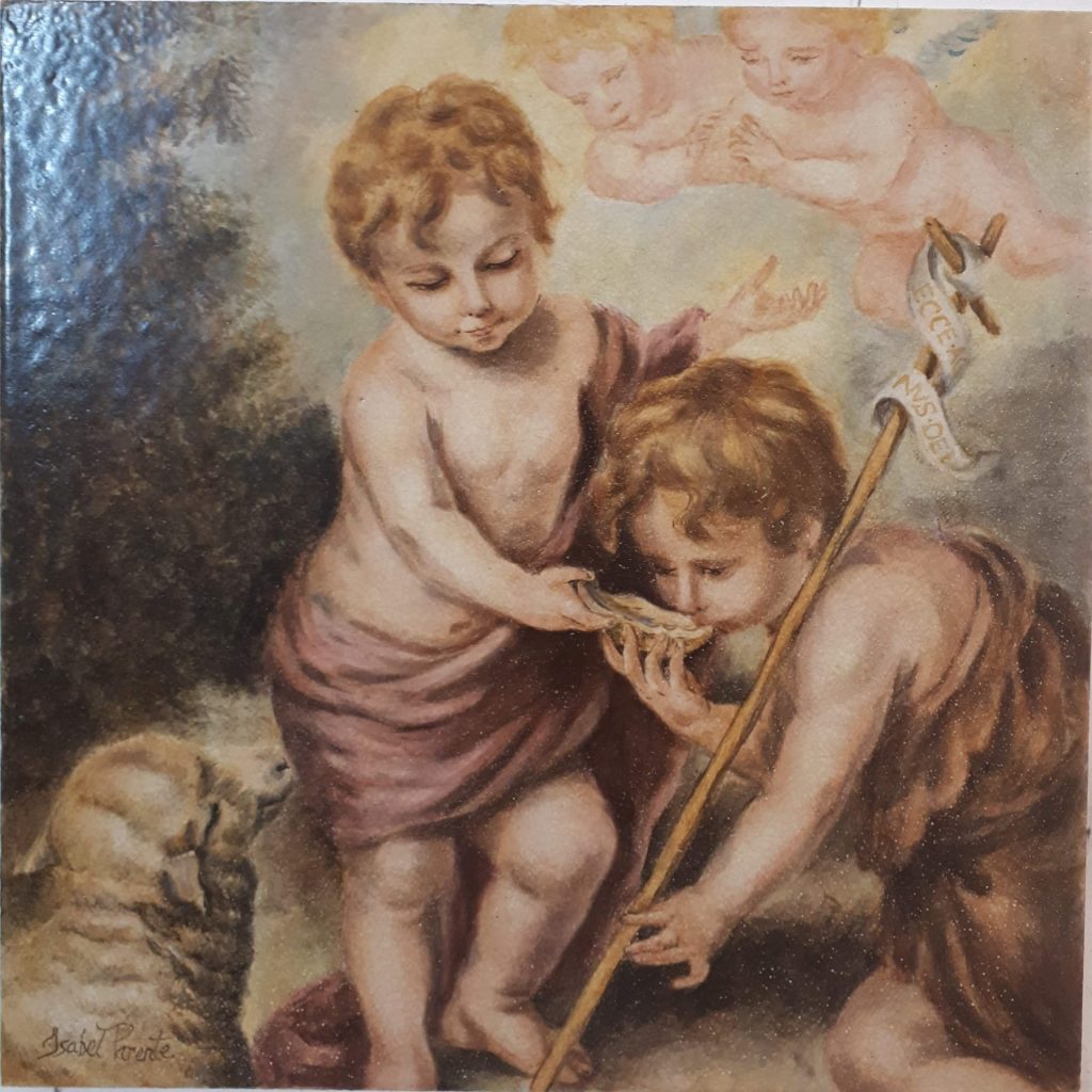 Pintura cerámica circular de la Sagrada Familia